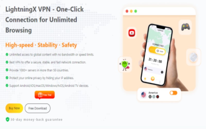 LightningX VPN is renowned for its blazing speed and robust security features. Here’s  what it offers: